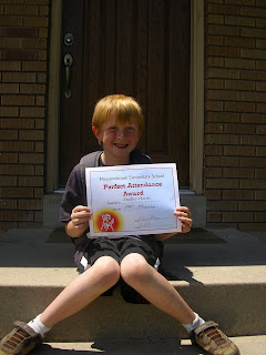 I cannot believe today is the last day of school. Bradley has grown so much and learned so much this year it is amazing. I am soooooo proud of everything he has accomplished this year. He started out the year still not knowing the whole alphabet(trust me we tried) and now is such a great reader. He reads everything billboards, Signs and best of all BOOKS !! He is soo sweet and loves to read Katie her bedtime book. He has worked so hard and we must give thanks to the best teacher in the world Mr Mueller. Bradley also had another great accomplishment, He was the only kid in his class to have perfect attendance!